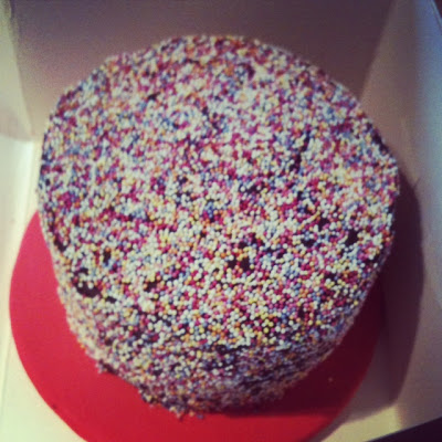 covering a cake with sprinkles is actually quite frustrating, but the end result is so fab, though the end result of 100's and 1000's all over the kitchen tops and floor is also quite fun! if you want to attempt this yourself, I do recommend doing the sprinkling over a large bowl to catch the majority of the sprinkles!